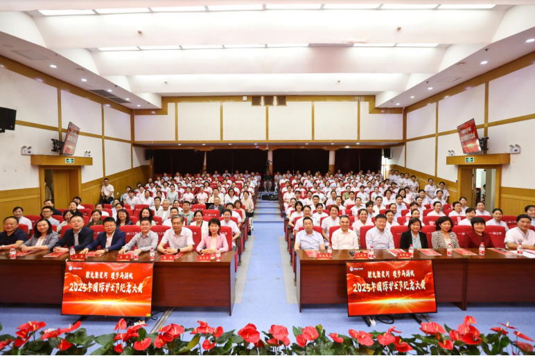 在门急诊楼17楼会议室举行以“微光聚星河 逐梦再扬帆”为主题的2025年国际护士节纪念大会。在院领导班子成员、行政处室及科主任代表、医护代表齐聚一堂,共同庆祝这一重要节日。大会分为“微光成炬·致敬芳华”和“星河共赴·逐梦扬帆”两个篇章。