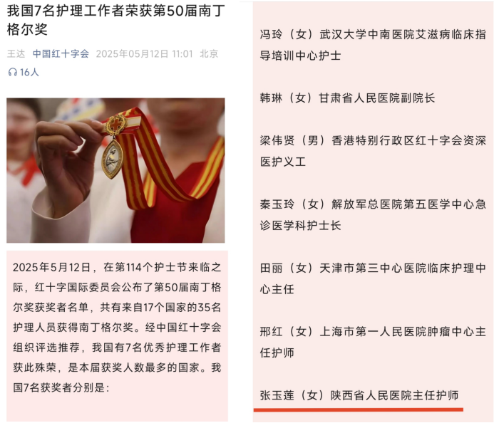 2025年5月12日,第114个护士节,红十字国际委员会公布了第50届南丁格尔奖获奖者名单,欧美视频
