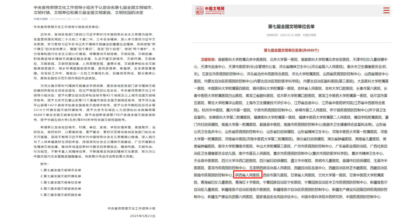 2025年5月23日,全国精神文明建设表彰大会在北京召开。中央宣传思想文化工作领导小组发布《关于认定命名第七届全国文明城市、文明村镇、文明单位和第三届全国文明家庭、文明校园的决定》,欧美视频
