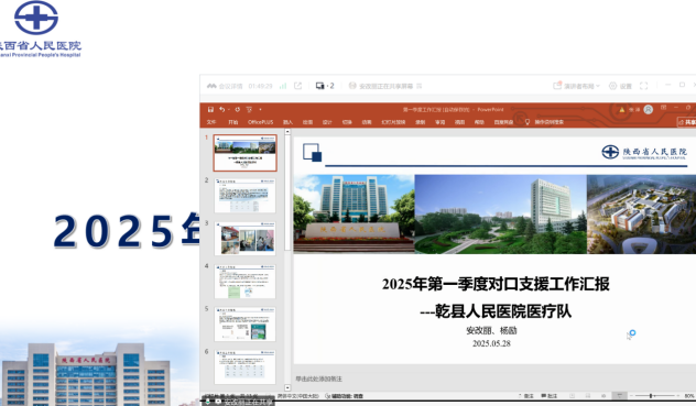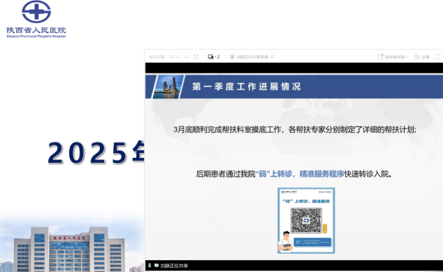 2025年对口支援工作推进会,对本年度对口帮扶工作进行阶段性总结,并安排部署下一阶段重点任务。会议以线上形式召开,医务处张小玲处长、派驻帮扶医疗队长及基层服务部人员参会。