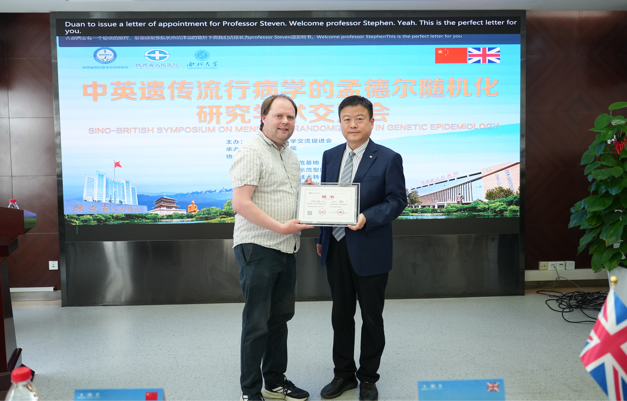规培医师的科研能力,拓宽研究视野,创新科研思路。随后,Stephen Burgess教授进行题为《Using genetic epidemiology to understand causal relationships: performing credible Mendelian randomization investigations》的授课,详细介绍如何科学地利用“孟德尔随机化”研究方法来解决科研问题。针对所讲内容,多名医务人员提出科研相关问题,Stephen Burgess教授详细地为大家一一作出解答,现场反响热烈。会后,在教学处温红侠副处长及西咸院区业务管理部刘鹏主任陪同下,Stephen Burgess教授一行实地参观了欧美视频