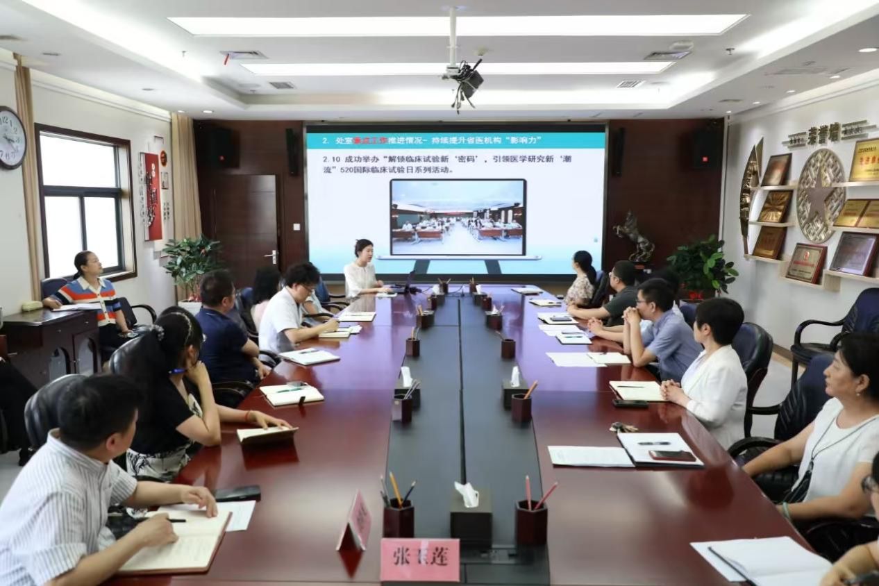 召开2025年上半年行政处室工作汇报会第二场。院长办公室、科研处、临床试验机构办公室、科研成果转化管理部、大数据中心、西咸业务部、耗材试剂部、省医学科学院创建办公室等8个部门负责人及业务骨干参加了本次汇报会,围绕上半年重点工作进展、应对举措及下半年计划作专题汇报。会议由副院长段降龙主持,党委书记张玉莲参会并讲话。