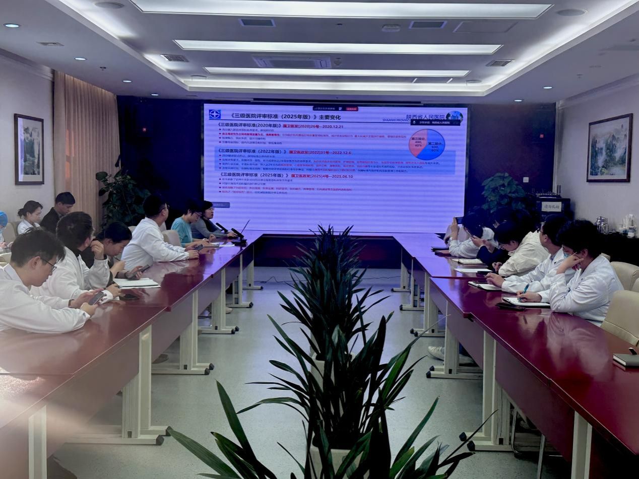 为深入贯彻国家《三级医院评审标准(2025年版)》最新要求,精准对接陕西省等级评审工作新动态,全面夯实医院等级复审数据支撑基础,10月30日,等级复审办公室联合大数据中心组织召开“等级复审数据上报推进培训会”。主院区与西咸院区职能处室、临床医技科室数据联络员共计60余人参会,会议同步保障两院区高效联动。
