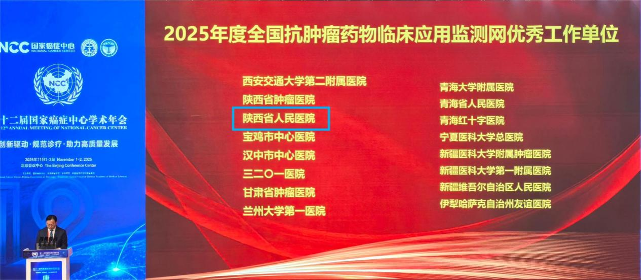 11月1日,2025年肿瘤规范诊疗监测与质控管理大会暨第六届全国抗肿瘤药物临床应用监测网学术年会在北京召开。会上,欧美视频 荣获“全国抗肿瘤药物临床应用监测网2025年优秀工作单位”称号。这是欧美视频 连续第二年获此殊荣,相关工作持续获得国家层面肯定。