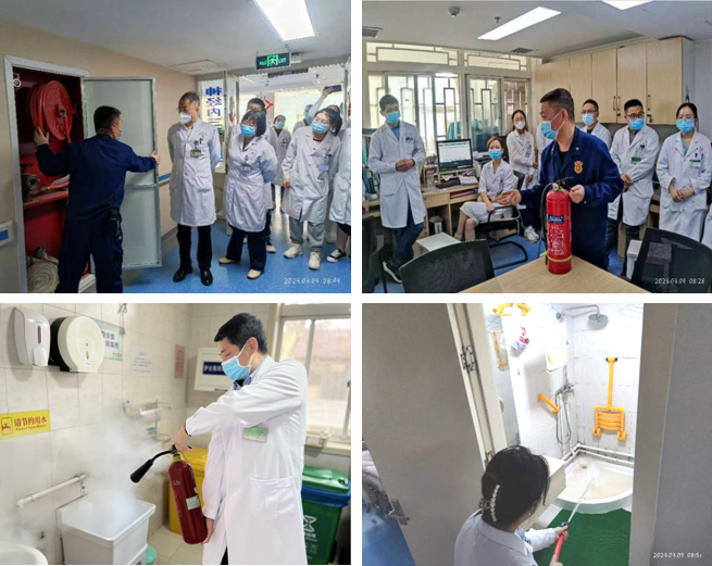 随后,趁热打铁,在李锐主任、苟宁护士长的安排下,开展了一次班后发生卫生间垃圾桶着火事件的消防演练。在大家的共同努力下,火情被迅速扑灭。保卫处李群艳科长点评认为,此次演练工作人员反应迅速,处置得当;整个过程安全、快速、有效;消防科、保卫处反应迅速、处置有序,无人员受伤,达到了预期效果。