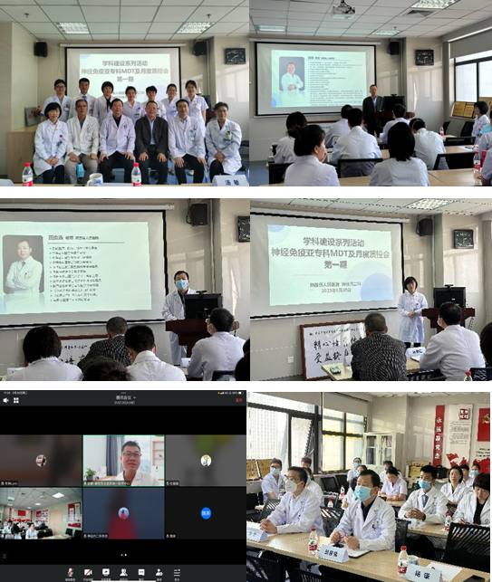 为了加快落实医院高质量发展目标,做好学科亚专业细分,创建“一科一品”精品工程,在医院及学科办的大力支持与推动下,神经内二科以“补短板、求创新”为宗旨,全力推进学科亚专业组建设工作。5月30日下午,杨谦主任带领医护专家,连线解放军总院神经内科神经免疫专家武雷教授,举办了“神经免疫亚专科MDT学术讨论会(第一期)”。学科办田应选主任、核磁共振室汤敏主任医师、解放军总院神经内科专家参会并讨论,神经内二科郭荷娜副主任医师主持。