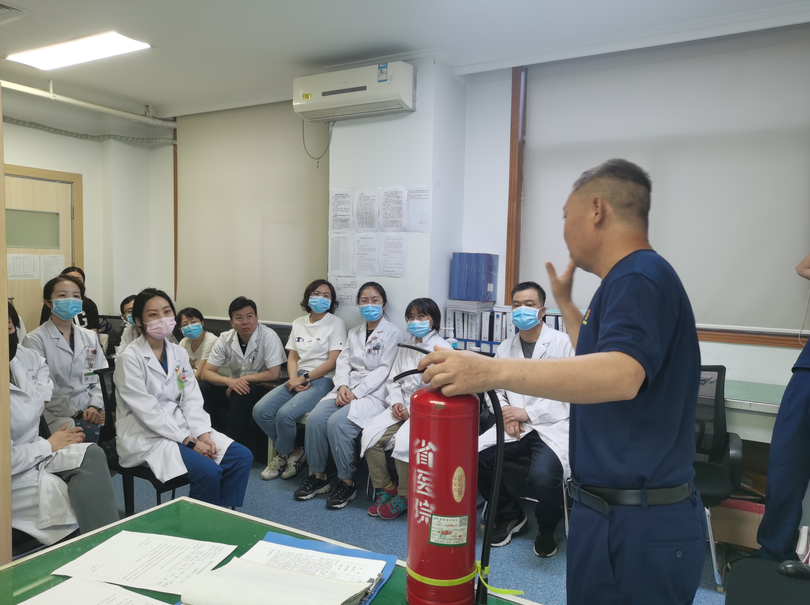 6月14日上午7:30,皮肤科全体医技护人员在科室负责人杨励副主任带领下,开展消防安全培训。培训邀请保卫处消防中心张科、王勇2位专业老师进行授课,解答疑问,进一步提升了全科室的消防安全应急处置能力。