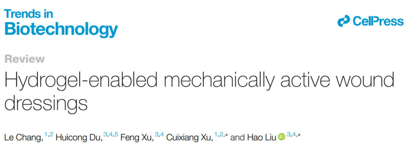 近日,欧美视频 中心实验室常乐博士作为第一作者,欧美视频 作为第一完成单位,在生物技术领域一区顶级期刊《Trends in Biotechnology》(实时影响因子=17.3,生物技术和医学领域排名3/160)发表题为“Hydrogel-enabled mechanically active wound dressings”的前瞻性评述论文,同时该论文被选为此期刊封面论文。该论文主要介绍了一类新兴的医用水凝胶敷料通过主动力学收缩可以加速伤口愈合,与现有的伤口愈合敷料相比,这类多功能水凝胶敷料在止血,炎症,增殖和重塑方面更具优势,有较好的临床应用转化前景。