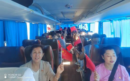 上午8时许,大巴车准时从医院出发。陈欣总支书记简短致辞,大家踊跃歌唱爱国歌曲,大声唱出了对祖国的祝福,将气氛推向高潮。为增强党史学习的趣味性和积极性,紧扣“学习二十大、永远跟党走、奋进新征程”主题,设置了有奖问答环节,大家踊跃参加、积极答题。