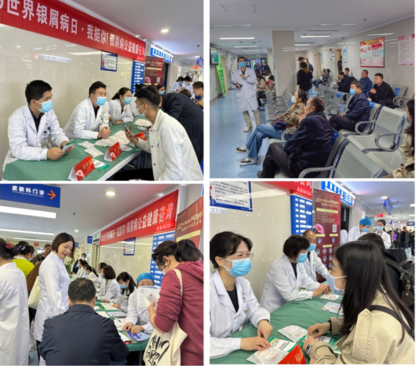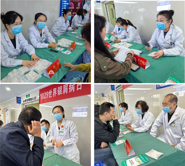 2023年10月29日是第二十届“世界银屑病日”,主题为“银路同行,以爱相愈”。10月25日上午,皮肤科医生、护士团队在门诊四楼大厅开展了银屑病义诊及健康宣教活动。
