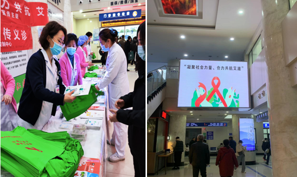 为推动艾滋病防治工作高质量开展,做好第36个“世界艾滋病日”宣传活动,根据碑林区艾防办工作要求,在陕西省疾病预防控制中心的支持协助下,12月1日上午,预防保健科主办,联合感染性疾病科、皮肤科、内镜中心、手术室等科室专家,在门诊楼一楼大厅开展了“深聚社会力量,合力共抗艾滋”为主题的义诊宣传活动。