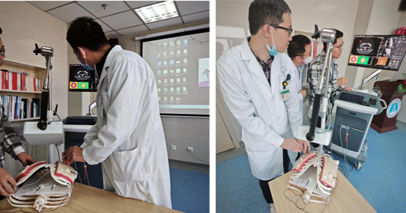 学习过程中,豆亚伟副主任带领大家了解了相关的原理、操作流程和注意事项。磁导航系统利用磁场来精确地定位和导航,可以在手术过程中实时跟踪和调整穿刺针的位置,确保穿刺的准确性和安全性。肺穿刺活检是获取肺部病变组织样本的重要手段,通过病理学检查可以明确诊断和治疗方案。