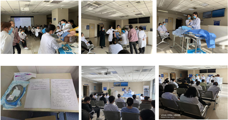 在刘莉副主任的全力支持指导下,穆靓副主任针对该阶段科室业务实际,临床科室对于床旁超声引导下胸/腹腔积液穿刺置管引流需求增多,科室集中利用11月下旬至12月份的每周周五中午集体学习时间,安排了理论学习及教学演示。由床旁介入操作技术优秀的薛宇红主治医生带领科室同事分阶段学习,从床旁操作适应症的评估和把握,到床旁操作规范化流程化,以及整个过程中的无菌观念,进行了详细讲解与演示。同时教学处大力支持帮助,科室从教学处借到胸穿腹穿模拟人,方便科室同事班后操作练习,强化巩固学习效果。