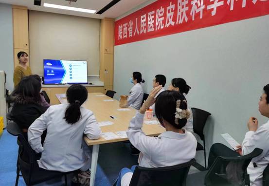 在成功通过国家药物临床试验专业组备案后,皮肤科团队积极寻求提升,致力于为患者提供更优质的医疗服务。1月24日上午,科室利用晨交班时间,举行药物临床试验科研培训会,张蕾副主任主持,杨励副主任做总结发言。