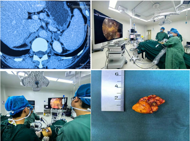 3月8日,在麻醉科、手术室的配合下,李智斌副主任及黄怡、陈波朋医生为患者施行西咸院区第一例全麻下后腹腔镜下肾上腺肿瘤切除术,手术历时30分钟,术后患者安返病房。