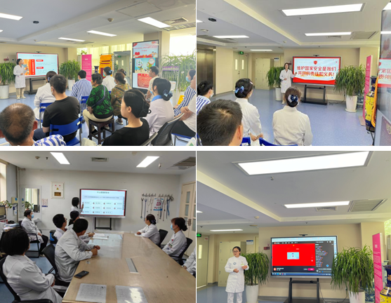 烧伤整形医学美容外科党支部牵头,开展多种形式的活动,向医护患普及国家安全知识。一是举办学习会,解读了总体国家安全观的内涵和外延,强调了国家安全对于国家发展、社会稳定和人民幸福的重要性,要求全体医护人员要深刻认识到学习国家安全知识的紧迫性和必要性,以高度的责任感和使命感投入到工作中去。二是举办患者安全宣教会,从跌倒的定义、跌倒预防的措施、哪些病人容易跌倒、预防跌倒十知道、患者跌倒应急处理流程等进行了详细地阐述。三是开设消防安全小课堂,对住院患者及家属进行了消防安全知识宣讲。通过消防安全知识问答等方式,病患及家属积极参与其中,不仅加深了对消防安全知识的理解,还提高了应对突发火灾事件的能力。