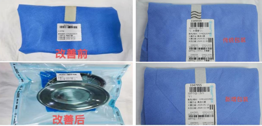 包装材料使用方面,创新思维,不断摸索,多方位节约成本。通过科学评估和改进,成功缩减了器械保护帽塑封袋的尺寸、改良了口护包的包装材料,有效降低了包装材料使用量。同时对临床科室使用传统包装治疗巾的需求积极调研,总结改进,根据不同科室需求改良治疗巾的包装数量规格,既满足了使用需求,又极大节约了临床科室的成本支出,避免了不必要的浪费。