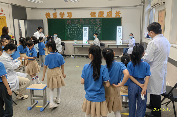 孩子是祖国的未来,“让孩子们拥有光明的未来“是国家对近视防控工作的殷切期望。为进一步推动近视防控工作落实,眼科与大学南路小学联合开展校园近视筛查工作,张坚主任和刘莉莎护长带领16名眼科医护人员和党员突击队在5月15日和22日、23日三天内,为大学南路小学分校及主校的5359名小学生免费进行了视力和验光检查。在筛查过程中充分利用信息化手段,自动采集和归集检查结果,做到每个孩子检查后能够立刻扫码获知检查结果,全部检查完后半小时内数据按国家体质网上传标准发回学校,获得了校方的高度好评。