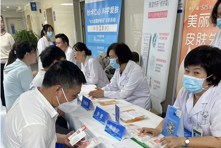 2024年5月25日是第十八届“全国护肤日”,主题为“美丽中国、皮肤先行”,再次掀起了科学护肤的热潮。5月22日,皮肤科在杨励副主任的组织带领下,在门诊举行义诊宣传活动,通过多元化的科普宣传,引导公众树立科学、健康的护肤理念。