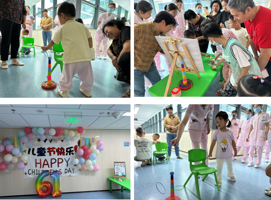 小朋友们热情高涨,踊跃参加各项游戏。《彩虹套圈圈》游戏更是得到了小朋友们的一众好评,家长们也纷纷参与其中,沉浸式体验了一把六一儿童节的欢乐。家长们与孩子一同完成各种任务,享受亲子时光。科室还特意为患儿们准备了精美的礼物和祝福卡片,让他们在收到礼物的同时感受到来自医护人员的关爱和祝福。