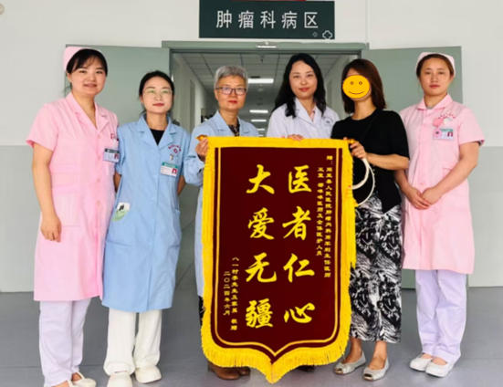进一步完善基因检测,结果患者为EGFR19外显子缺失突变,这意味着患者可从靶向治疗中获益。王玺医生随即为患者制定了化疗联合靶向治疗方案,并在治疗后以靶向治疗进行维持。经过短短一周治疗,患者的症状显著改善,生活质量极大提升,2周后患者脱离氧气,步行回家,家属专程送来锦旗表达感激之情。此次王玺医生用专业知识,诠释了医者仁心,展现了医者担当,为当地肿瘤患者带来了新生机、新希望。