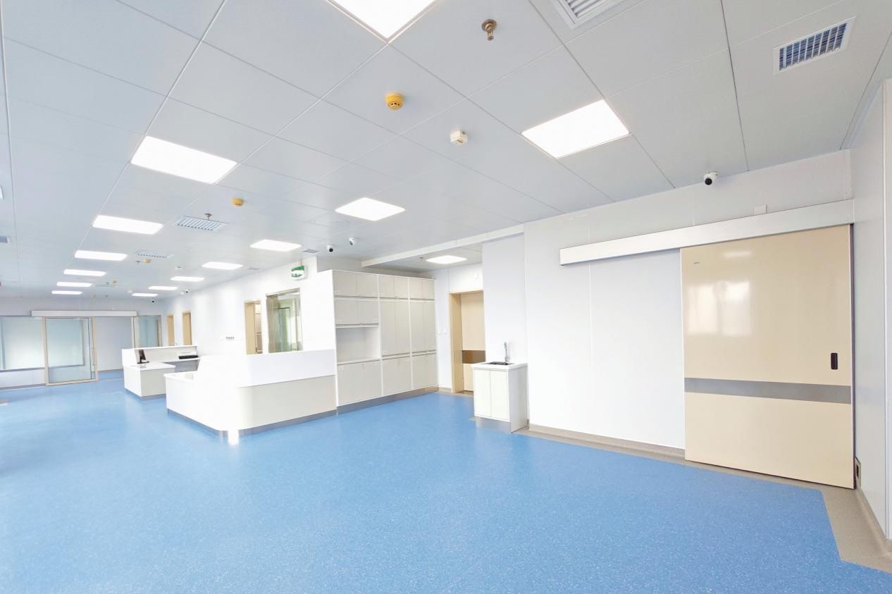 改造后的住院病房升级换新颜,总务处与设计、使用科室多次沟通,对功能分区进行了优化,将原有病房打通改造为重症监护病房,增加独立的护士站、治疗室、处置室、污物间、隔离病房及患者卫生间,尽可能达到结构紧凑,设计合理,严谨细致;隔离病房单独增设落地观察窗及玻璃电动推拉门,便于医护人员实时观察患者病情,为患者打造速度高、全面的生命航道。