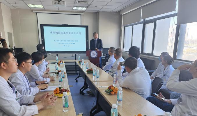 会上,田应选主任为章文斌教授颁发“学科技术指导专家”聘书,期望通过双方合作未来可以给医院带来新的活力和创新,提供新的医疗理念和技术支持,促进医疗水平提升。随后,章文斌教授带来了关于《神经调控新技术的临床应用》的精彩讲座。随着科技的发展,神经调控新技术也在不断发展和进步,更多创新技术能够应用于神经系统功能恢复当中,为神经系统疾病患者带来了新的治疗希望。神经内二科康蓓副主任医师分享了《DBS术后程控的基础》相关内容,术后程控涉及各项刺激参数的设定,通过与药物完美结合,为患者带来优质的服务。