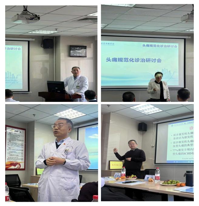 会上,西安交通大学医学院附属第一医院神经内科主任罗国刚教授深入浅出的讲解了《急危重症头痛的早期识别及诊疗思路》,神经内二科雷琦教授解读了《偏头痛的诊治进展》,神经内一科邸伟教授就《从2024最新研究看偏头痛与卒中关联新进展》做了专题报告。在神经内三科李锐教授的主持下,青年医生王沈阳分享了《小病灶、大问题》一例慢性偏头痛合并脑小血管病的诊治过程,王凯悦医生分享了《持续不缓解的头痛》一例复杂特殊类型的蛛网膜下腔出血的诊治过程。神经内二科郭荷娜教授及神经内二科郭晓敏教授分别对上述病例进行了深刻且细致的点评。会议最后,在神经内一科胡军教授的主持下,药学部主任张鹏教授、西安交通大学医学院附属第一医院罗国刚教授、神经内二科郭荷娜教授、神经内三科种莉教授就有关头痛规范诊疗的若干问题进行了热烈的讨论。