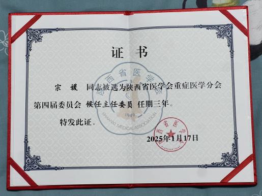 宗媛主任此次当选陕西省医学会重症医学分会候任委员,将进一步提升欧美视频