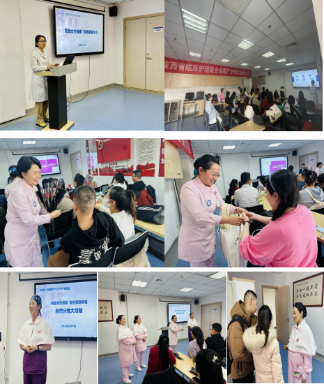本次活动由王美蓉副护士长主持。樊阳阳副主任进行《生命的选择题:顺产VS剖腹产》讲座,用通俗易懂的语言、丰富的临床案例,详细讲解了自然分娩和剖宫产的利弊,帮助孕妈妈们科学选择分娩方式,树立自然分娩的信心。杨通主管助产师分享《自然分娩大攻略》,详细讲解了分娩基本知识、如何应对宫缩、产房特色服务、住院用物准备、住院流程等,并现场演示了减痛呼吸法、自由体位等促进自然分娩的技巧,帮助孕妈妈们消除紧张情绪,轻松应对分娩挑战。活动现场气氛温馨热烈,杨春荣总护士长、任朵梅副护士长为每一位孕妈妈送上象征爱与祝福的玫瑰花和小礼品,祝愿她们节日快乐,平安顺产。