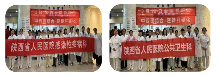 2025年3月18日是第25个“全国爱肝日”,今年的宣传主题是“中西医结合,逆转肝硬化”。在“全国爱肝日”来临之际,在陕西省疾病预防控制中心的统筹指挥下,感染性疾病科与公共卫生科、中医科携手,以“中西医结合,逆转肝硬化”为主题,精心策划并开展院外与院内系列义诊活动,通过疾病健康咨询、肝病初步筛查和科普宣讲等,帮助广大居民深入了解肝病的防治方法,倡导科学防病、健康生活的理念,提高公众对肝脏健康的认知,推广中西医结合的肝病治疗理念,守护人民健康。