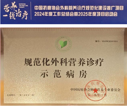 中国抗癌协会肿瘤营养专业委员会自2021年起,在中国抗癌协会指导下正式启动“规范化外科营养诊疗示范病房”建设项目,截至2024年底,已完成全国292家示范单位建设。该项目旨在建立标准化围手术期营养诊疗体系,有效改善患者生存质量,对推动我国外科营养诊疗的规范化发展具有重要意义。普外一科此次荣获“规范化外科营养诊疗示范病房”,标志着科室围手术期营养诊疗能力已达到国内先进水平,为改善患者术后康复效果提供了重要保障。