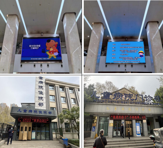 在“世界自闭症日”临近前几日,张西嫔护士长已带领团队制作了一部自闭症宣传视频,与“4月2日世界自闭日,早发现、早干预,让‘星星的孩子’不再孤单”的温馨标语一并在院内各电子大屏滚动播放,旨在让更多人了解和关爱自闭症儿童。