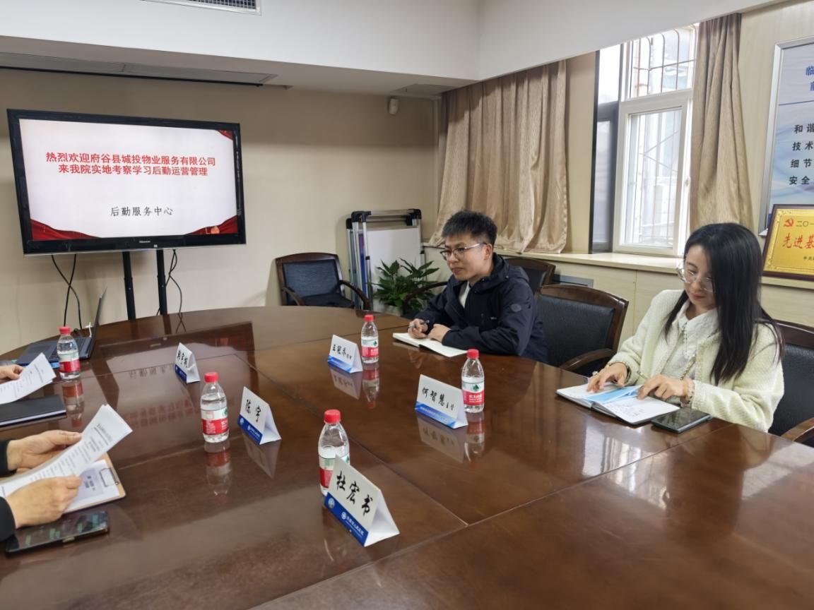 4月15日,府谷县城投物业服务公司王冠乔经理一行来欧美视频 调研,学习借鉴欧美视频 在水、电、维修、电梯、保洁、医疗废物智慧管理等先进经验,后勤服务中心保洁部、工程服务部负责人接待。