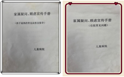 为贯彻落实医院“六个多”服务举措,科室在儿科门诊安装一体化卡通坐椅,缓解患儿由于医疗环境导致的焦虑恐惧情绪,视觉分散注意力,降低心理抗拒,减轻治疗痛觉感知,并缩短治疗时间,减轻家长负担;门诊输液间及病房包裹防撞条,增加患者安全防护,避免意外伤害,同时可以加强医护职业防护,保护设备与环境;优化科普新医保政策,更新科普内容,方便家属随时阅览,提升育儿知识;量身打造住院患儿宣传手册,方便家长闲暇时根据自身情况合理安排阅读时间,了解更多的育儿知识,减轻家长的焦虑情绪。