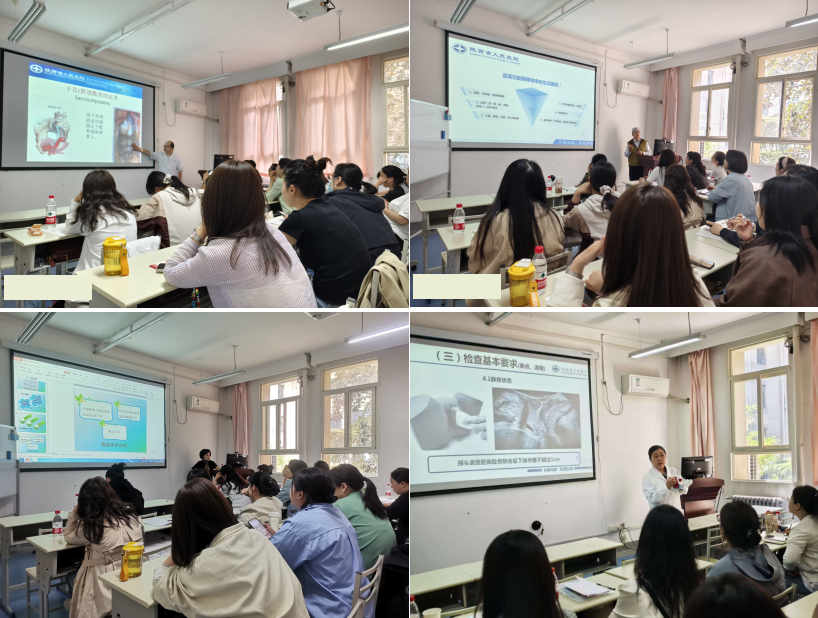 泌尿外科孙羿主任医师、妇科姜向阳主任医师、产科(西咸)胡盈主任医师、肛肠外科张西玲主任医师分别围绕女性泌尿及神经泌尿的临床诊疗进展、POP评价体系及中盆腔脱垂治疗进展、产后盆底康复治疗和后盆腔病变临床诊疗展开了精彩的授课,并结合手术视频展示了相关手术的要点及临床医师对超声诊断的关注点。