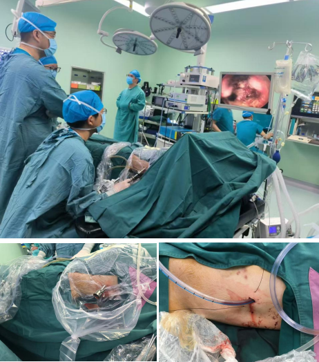 首例视频辅助腹膜后入路胰腺坏死清创引流术。该手术的实施,标志着肝胆外科在重症胰腺炎合并感染性胰腺坏死微创外科治疗领域迈出了坚定一步,进一步提升了科室重症胰腺炎的微创外科治疗水平。