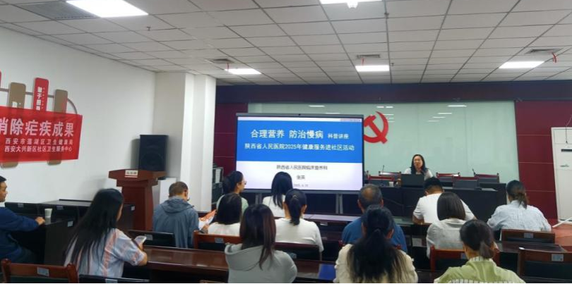 4月24日上午,营养科张英主任在莲湖区红庙坡街道办事处卫生服务中心为工作人员及居民代表开展“科学营养与健康生活”专题讲座。张英主任结合居民日常饮食特点,用通俗易懂的语言讲解合理膳食结构、营养搭配原则及常见营养误区,引导大家如何“吃出健康”。居民李大爷听完讲座后说:“原来糖尿病病人的饮食也可以这么丰富,你们来一次,顶我自个儿琢磨半年养生文章。”