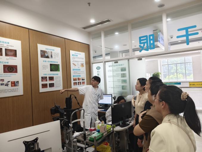 在成都中医药大学附属眼科医院学习交流期间,该院段俊国院长陪同观摩,中医科团队重点针对风湿免疫科常见疾病——干燥综合征所致的干眼症状针灸疗法、睑板腺按摩及中药熏蒸、中药超声雾化技术进行了深入观摩学习,详细了解其治疗原理、操作规范及临床应用效果,探索中西医结合治疗干眼症状的新路径,为开展和改善相关中医适宜技术汲取宝贵经验。
