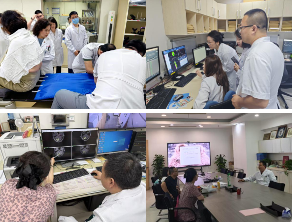 放疗科团队先后参观了黄埔院区的放疗科定位室、物理计划室、加速器治疗室及质控中心,详细了解了其先进的设备配置、规范化管理流程及质量控制体系,系统学习了乳腺癌术后大分割、超大分割放疗技术在适应症把握、靶区勾画、计划制作、剂量优化、质量控制等关键环节的操作规范。两院专家围绕典型病例,就该技术在临床实践中遇到的问题和挑战进行了深入的交流与探讨,特别就如何在保证疗效的同时,最大限度降低心肺等重要危及器官的放射性损伤分享了各自的经验和见解。