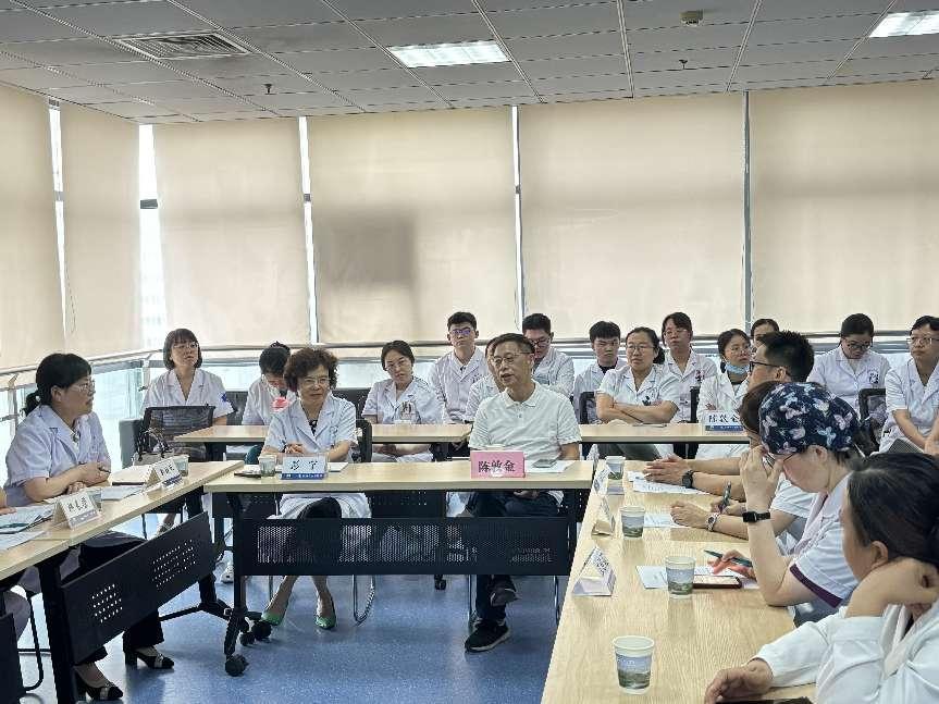 陈敦金教授详尽了解了产科关于学科建设、业务特色及发展概况的汇报,并与产科医护团队围绕高质量发展背景下的学科精准布局、人才梯队系统培养、医疗安全与效能提升,以及生育率下降趋势下的学科应对策略等热点话题进行了深度交流。