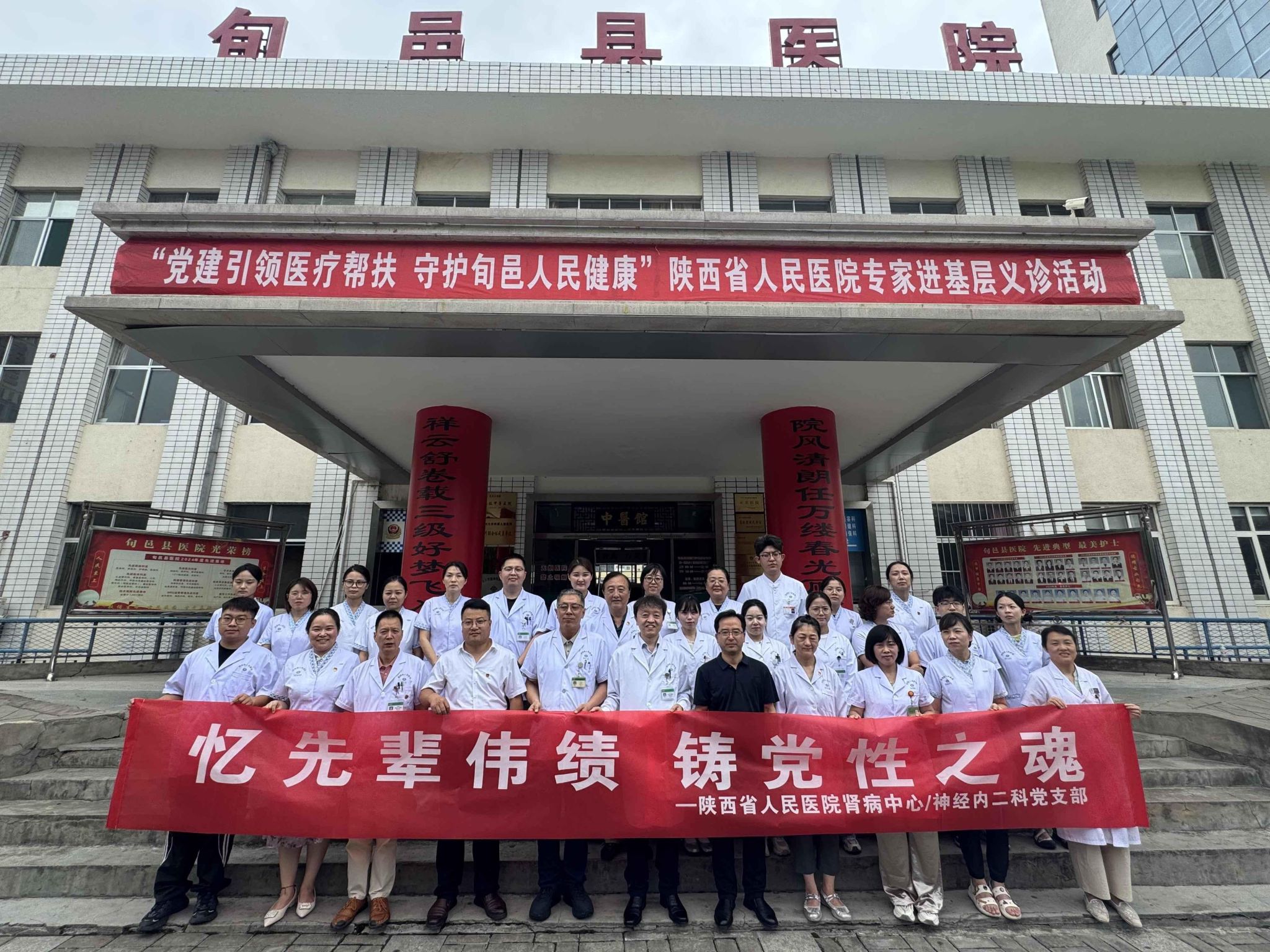 8月10日,肾病中心、神经内二科党支部赴旬邑县马栏干部学院接受红色教育,并在旬邑县人民医院开展义诊惠民活动。