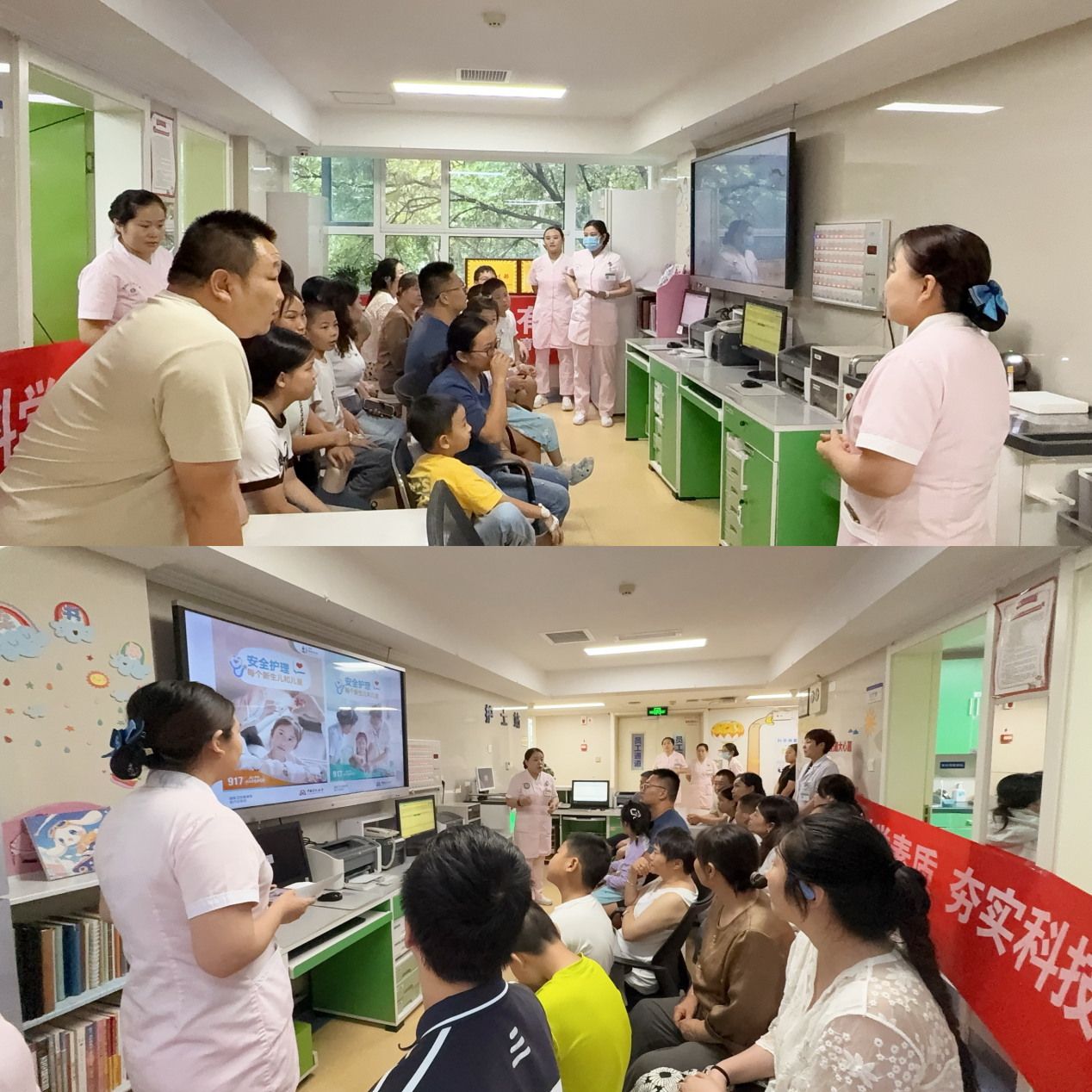 活动还举办了患者安全主题患教会,以丰富的临床案例,多方位科普了儿科腕带的作用、双人核对的重要性、坠床误吸风险的防范、消防安全、精准用药策略等住院期间安全保障措施。并面向基层儿科护士开展了“儿童意外伤害与预防”主题讲座,通过培训进一步强化一线护士预防意识和标准化操作流程。