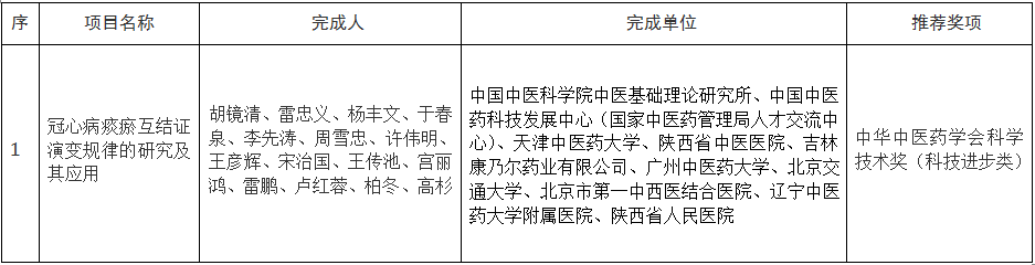 2024年度中华中医药学会科学技术奖(科技进步类)项目