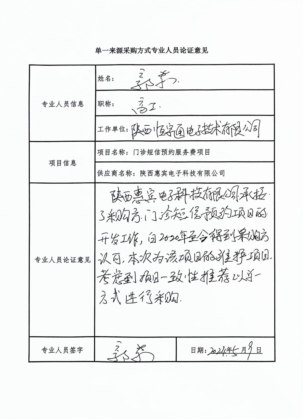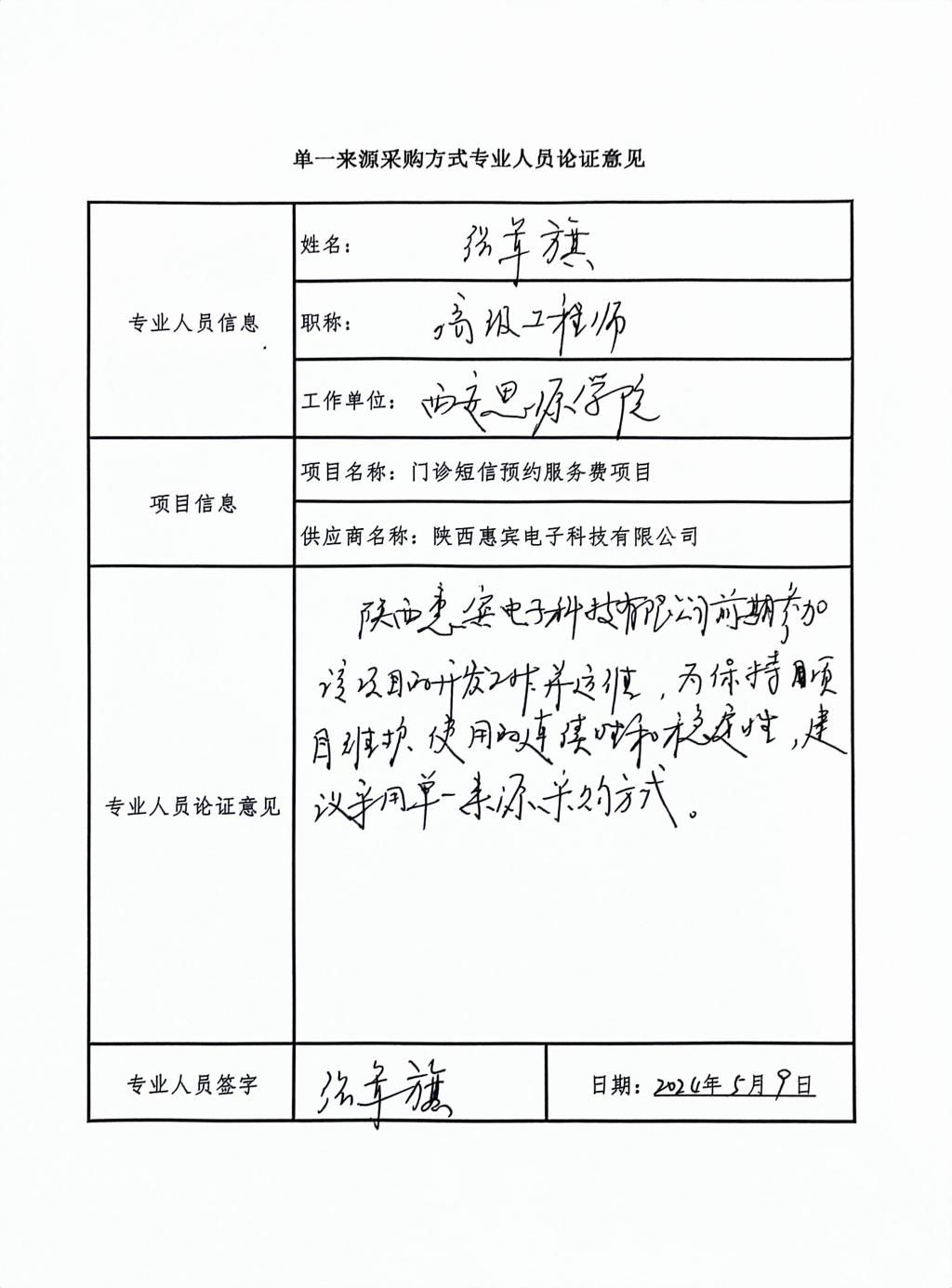 因2020年已跟此系统对接,为保持项目一致性,门诊短信预约服务费项目只能从唯一供应商处采购。