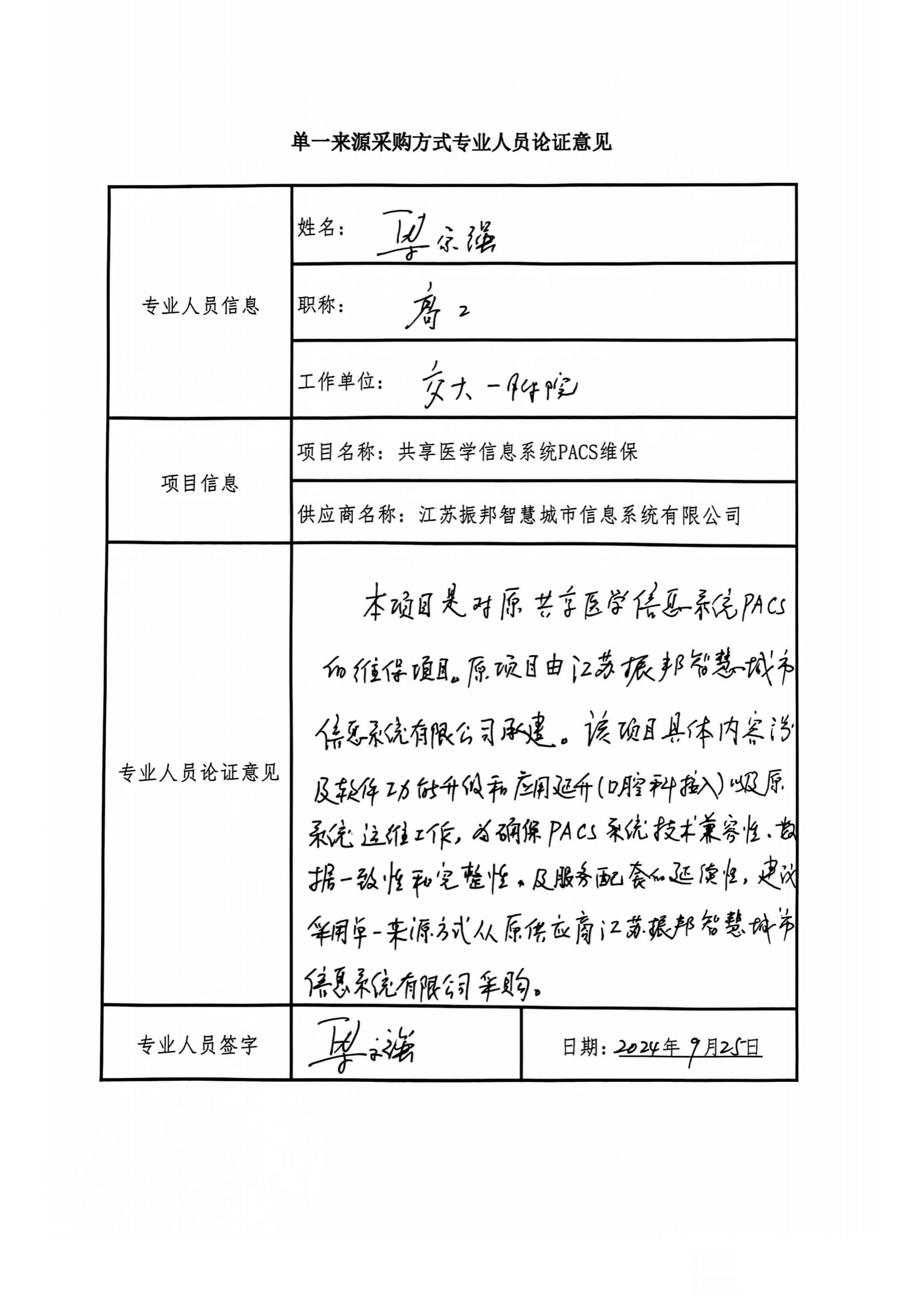 本项目是对原共享医学信息系统PACS的维保项目,该项目具体内容涉及软件功能升级和应用延伸以及原系统的运维保障工作,作为医院信息化的核心软件之一,PACS系统与HIS、集成平台等各类业务系统进行了深度的数据对接和集成,为确保PACS系统技术兼容性、数据一致性和完整性以及配套服务的延续性,建议采用单一来源的方式从原供应商采购。