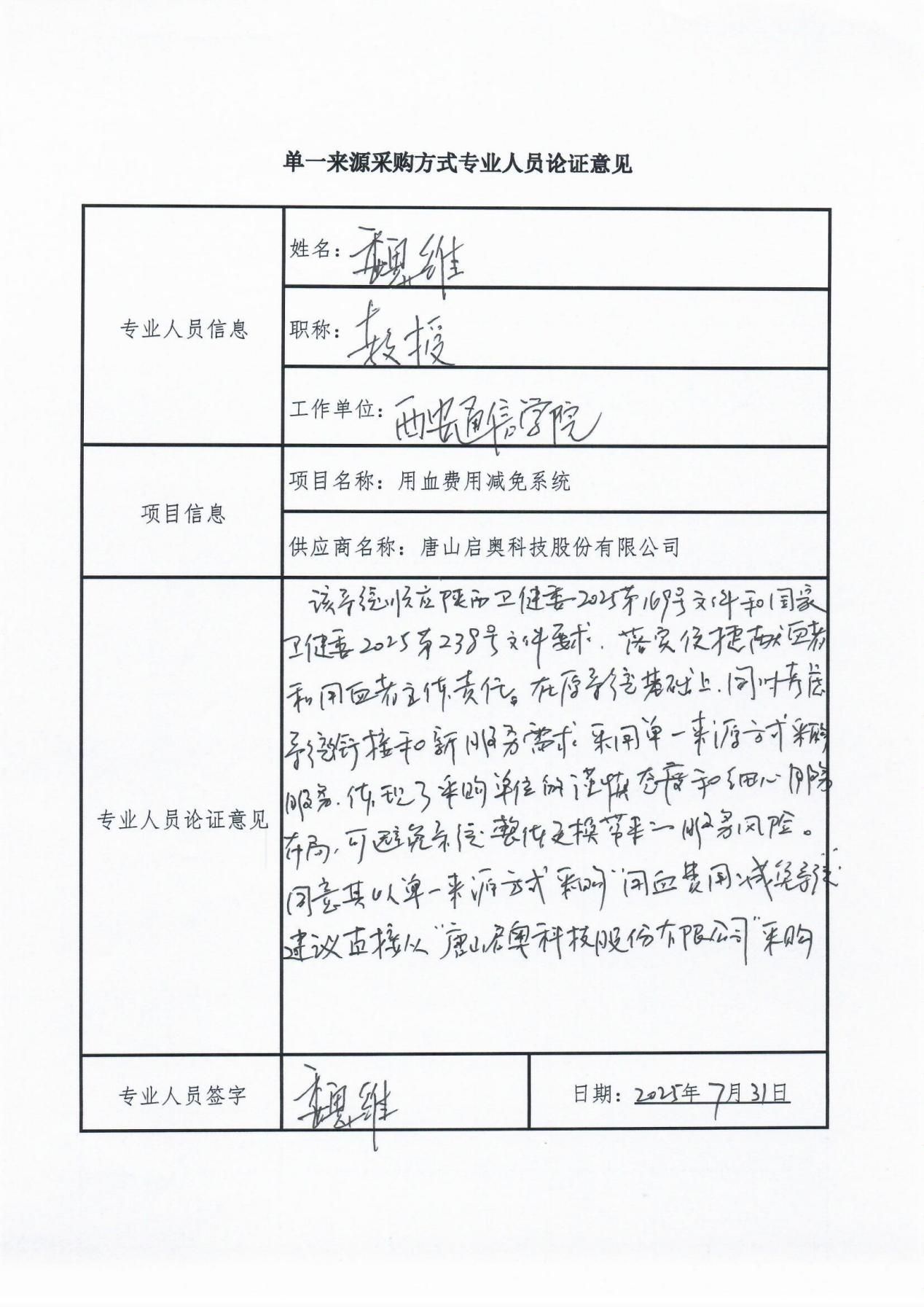 目前陕西省血液中心血站业务系统、临床订血系统、血液管理信息系统(全市联网系统)、血液减免平台数据中心均由唐山启奥科技股份有限公司承建。陕西省已安装用血费用减免系统医院也均由唐山启奥科技股份有限公司所承建,系统承建具有唯一性。