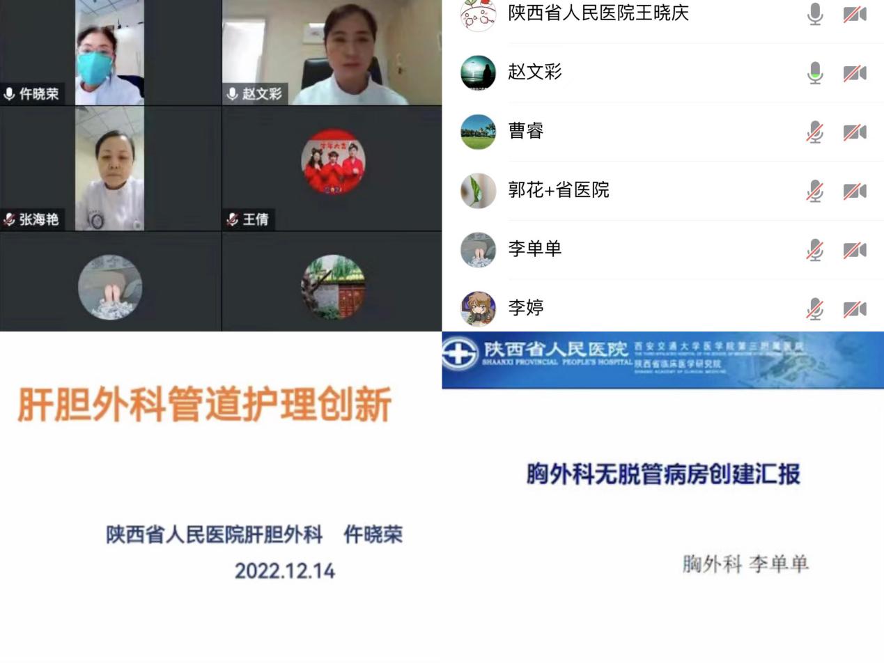 泌尿外科病院、肝胆外科、普外一科、耳鼻咽喉头颈外科、神经内科等12个科室的护士长分别对科室病房建设落实情况、科室亮点及经验进行了交流分享。王晓庆总护士长、郭花博士后分别点评,肯定了各科室创建无脱管病房的成果,要求各科室继续按照护理部制定的规范、流程创新性地开展工作。赵文彩护士长最后总结,要求全力保障患者安全,继续加强和细化无脱管病房措施,展示亮点,形成有内涵、有深度、有特色的流程和制度,并在全院推广。