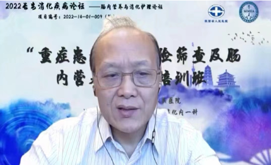 会上,消化内一科刘贵生主任从重症患者营养支持、肠内营养的方式及肠内营养关键技术等方面讲述了肠内营养对于重症患者治疗的重要性。消化内一科曹睿护士长介绍了本次论坛课程,并分享了科室开展重症急性胰腺炎肠内营养治疗、炎症性肠病肠内营养治疗、床旁盲插鼻肠管技术等肠内营养治疗及技术的历程及所取得的成绩。
