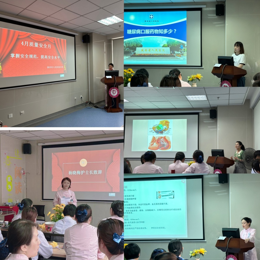 首先,杨晓梅护士长对近期护理工作的亮点提出表扬,针对安全隐患事件进行分析,并提出整改措施。静疗专科护士马瑜讲解了“输液穿刺与成功留置的秘诀”,周月稀护士讲解了妇科常用药物知识,糖尿病专科护士杨阳分享了糖尿病口服药相关知识,康复专科护士吴艳芳生动讲解了盆底康复相关知识,同时现场进行了考核。、